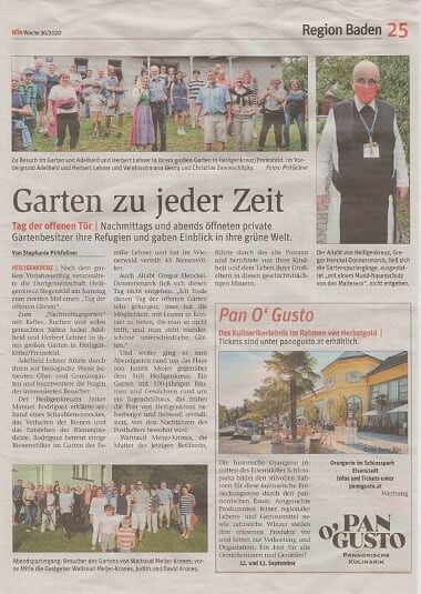 Nach 2019 fand heuer Ende August zum zweiten Mal der „Tag der offenen Gärten“ des Dorfvereins Heiligenkreuz Siegenfeld statt. Nicht nur die Gäste beider Schaugärten waren begeistert: Auch Stephanie Pirkfellner, Journalistin bei der NÖN, war von unserer Veranstaltung angetan und schrieb darüber einen sehr schönen Artikel.